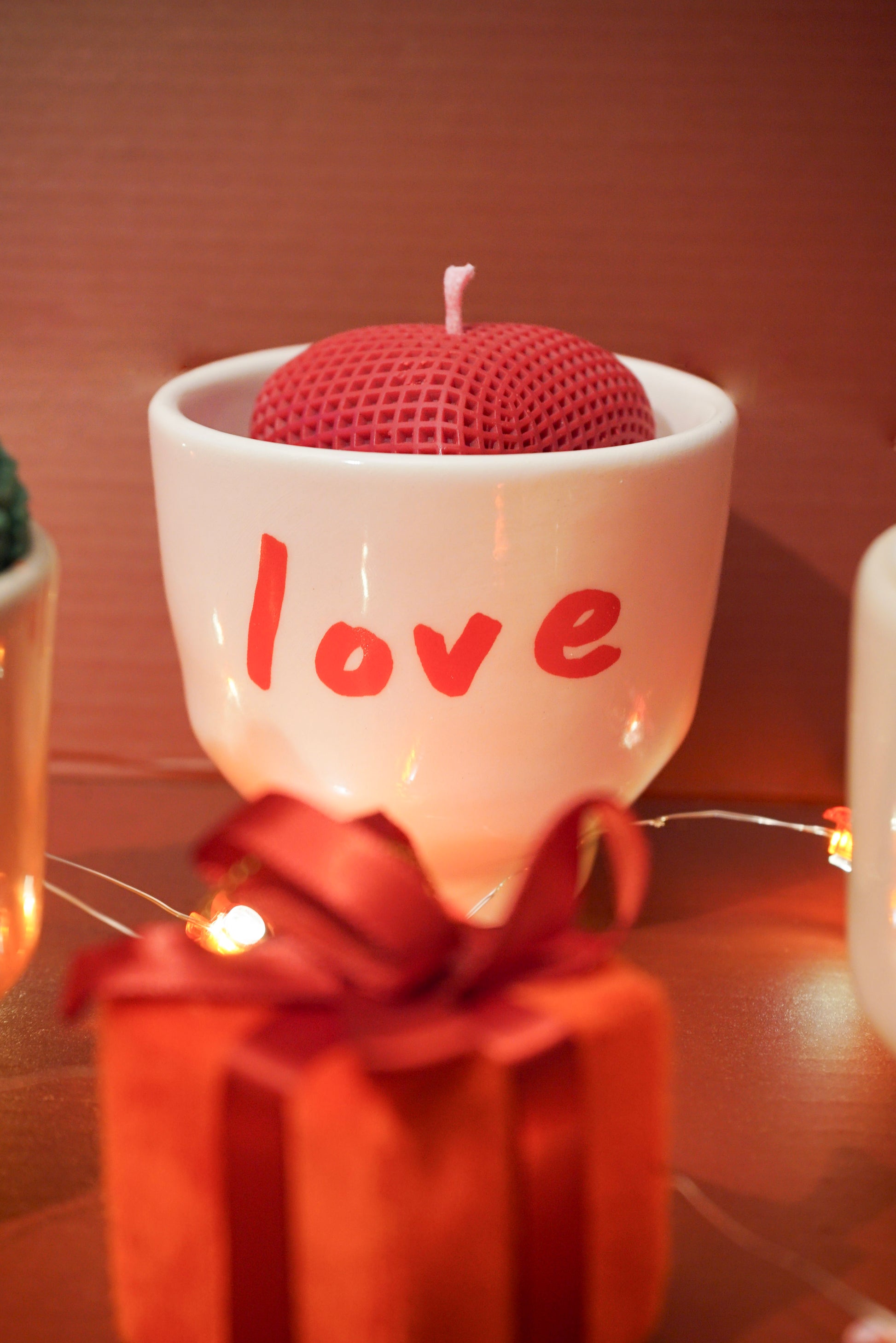 Bu ürünü aldığınızda içerisinde kırmızı kar tanesi olan mum hug,kiss ya da love bardağında gönderilecektir.