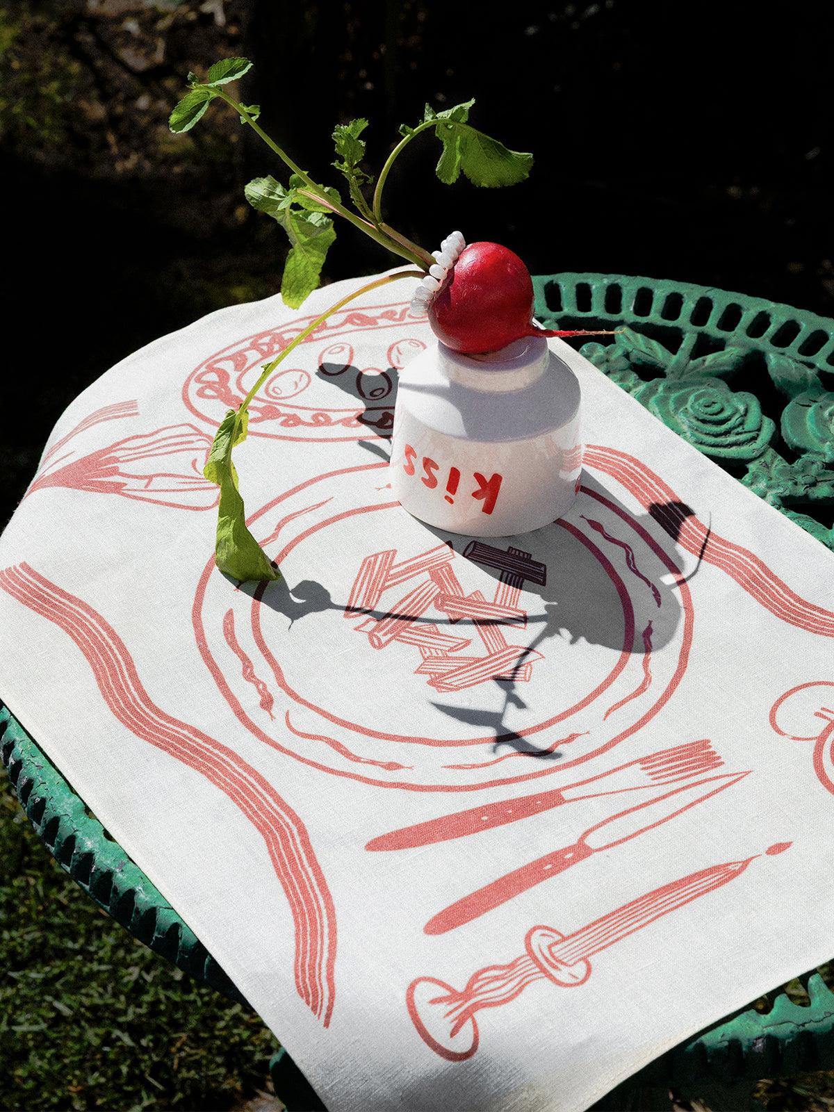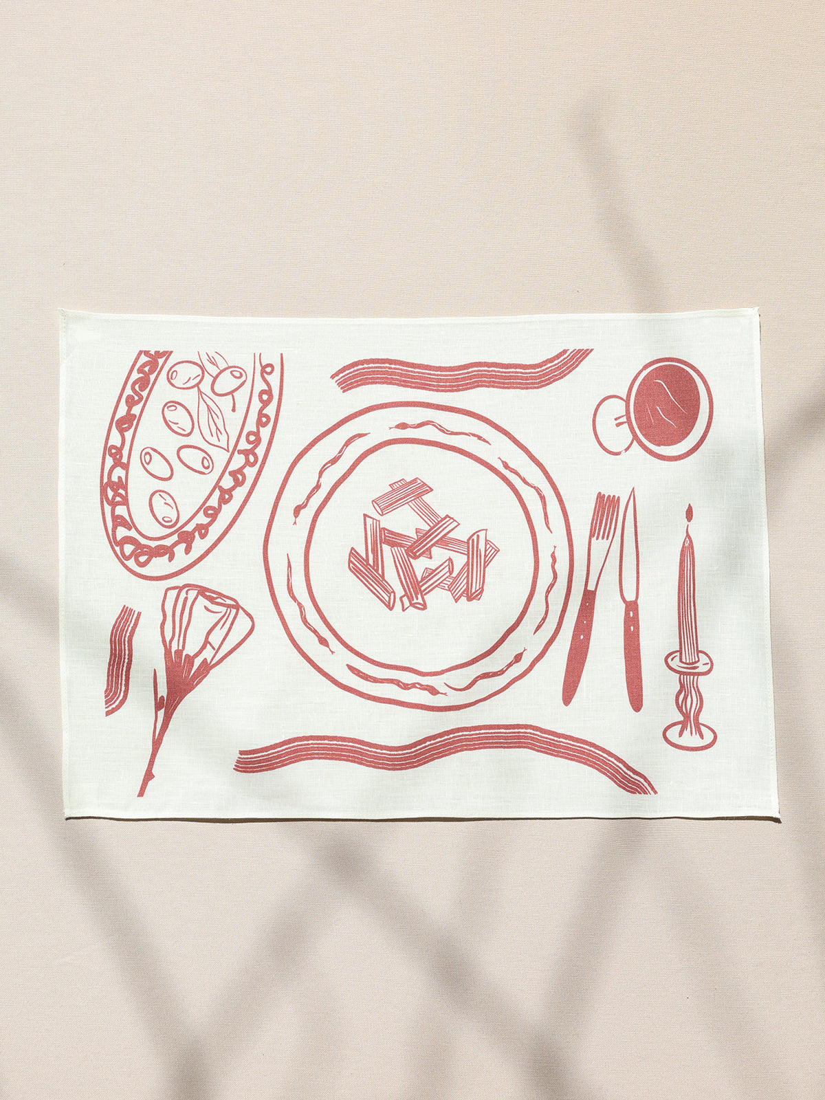A plate of pasta can brighten your day. Oh My Penne! brightens your table! With its fun design, warm tones, and witty spirit, it adds energy to your dining experience.