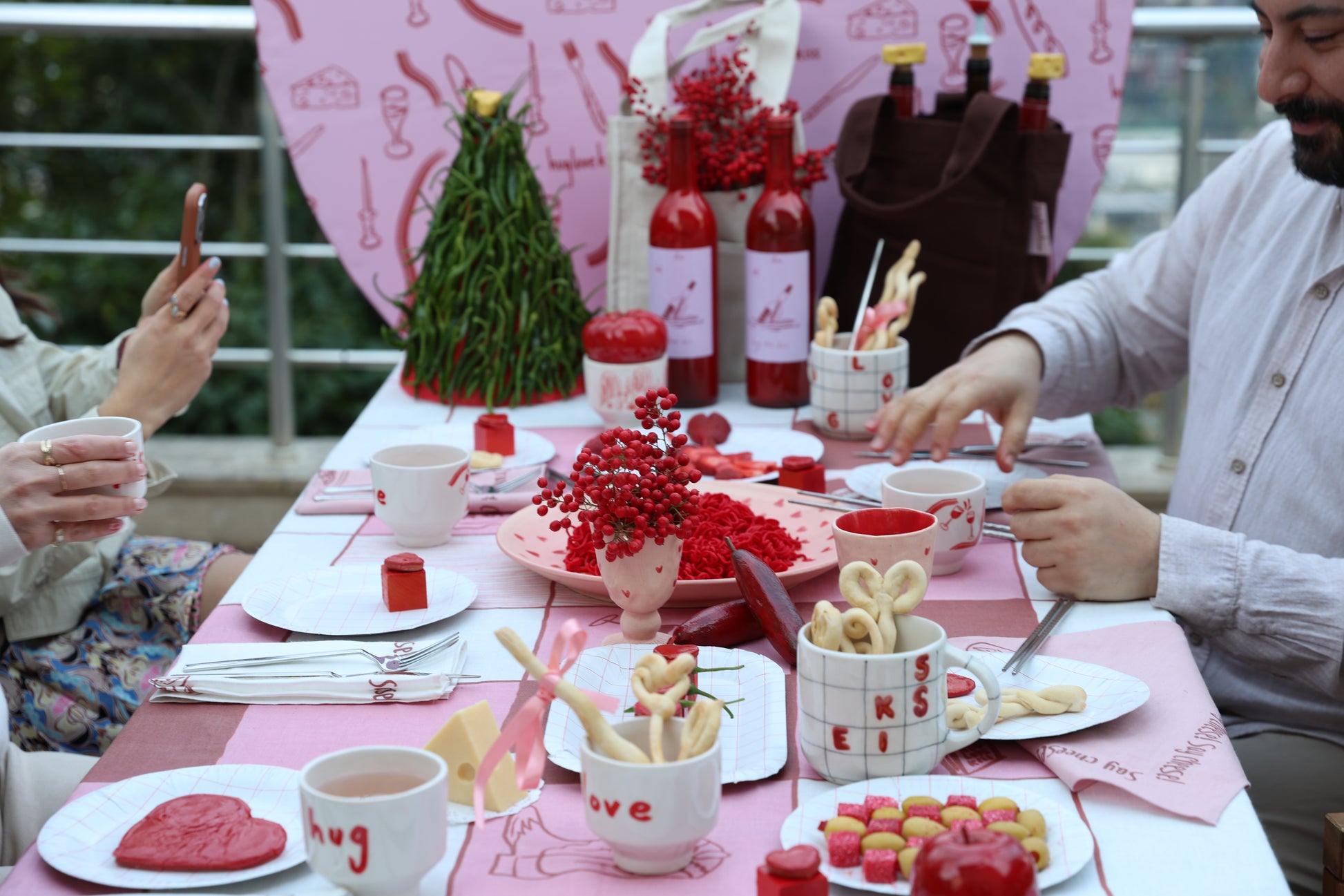 There are angels raising their glasses in the corners, and a drawing of a dining table in the center. Because eating is not just about filling your stomach, but about sharing moments, smiling, and celebrating life. Whether it's a special dinner or a long gathering at the table – this tablecloth transforms your table into a meeting point.