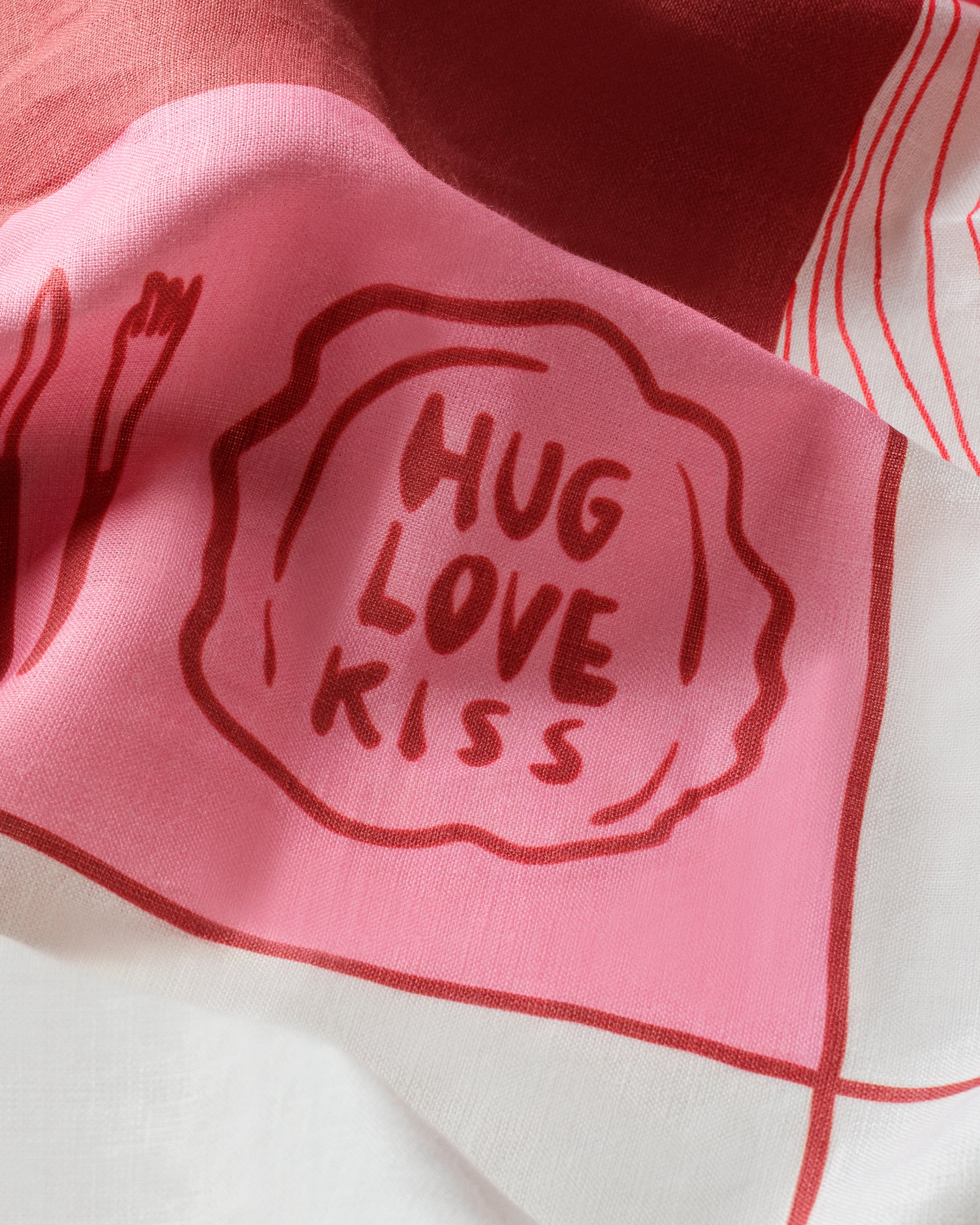 Bu masa örtüsündeki karelerin içinde dört tanesi var ki, onları biz kendi ellerimizle çizgilerle tamamladık. Her biri rastgele değil, bilinçli bir dokunuş! Çünkü Hug Love Kiss, her şeyin el emeği ve sevgiyle yapıldığına inanıyor.