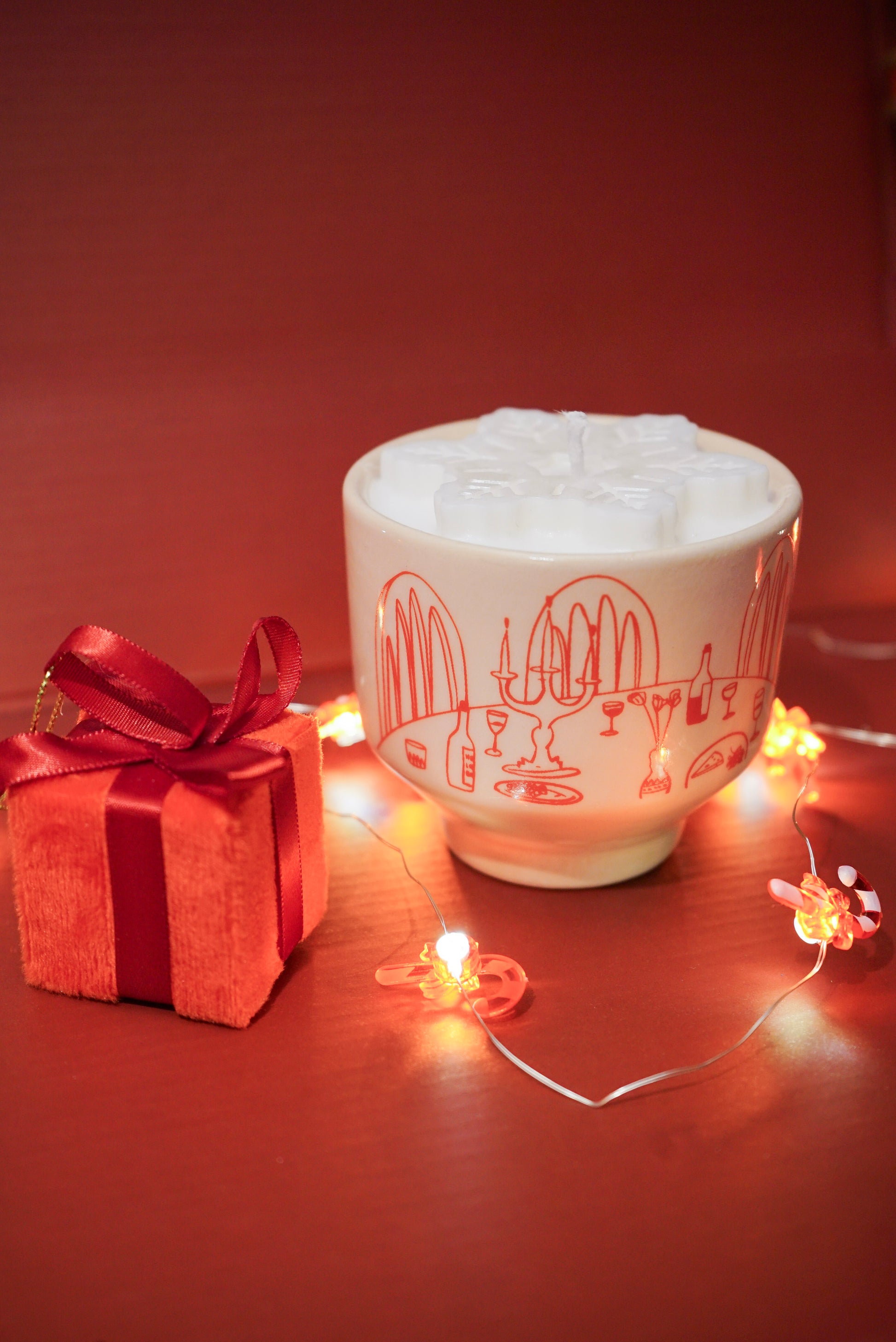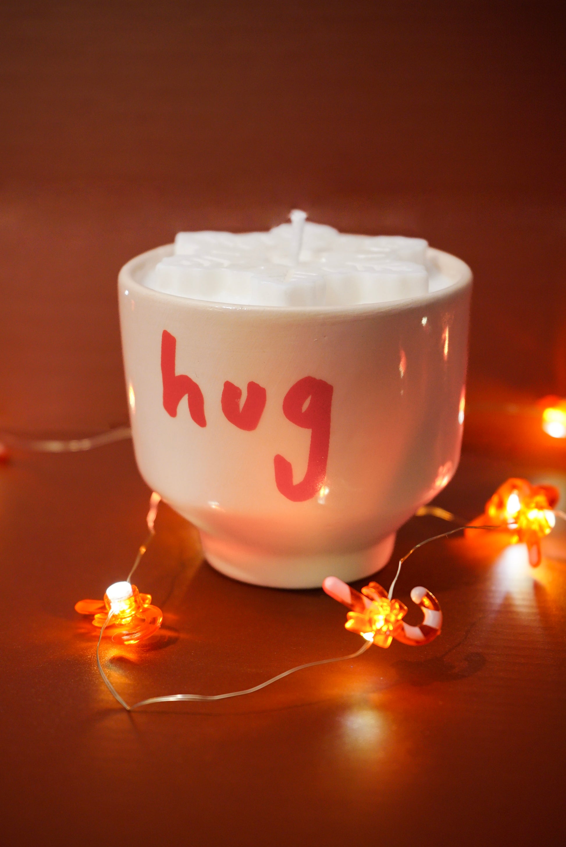 Bu ürünü aldığınızda içerisinde kırmızı kar tanesi olan mum hug,kiss ya da love bardağında gönderilecektir.